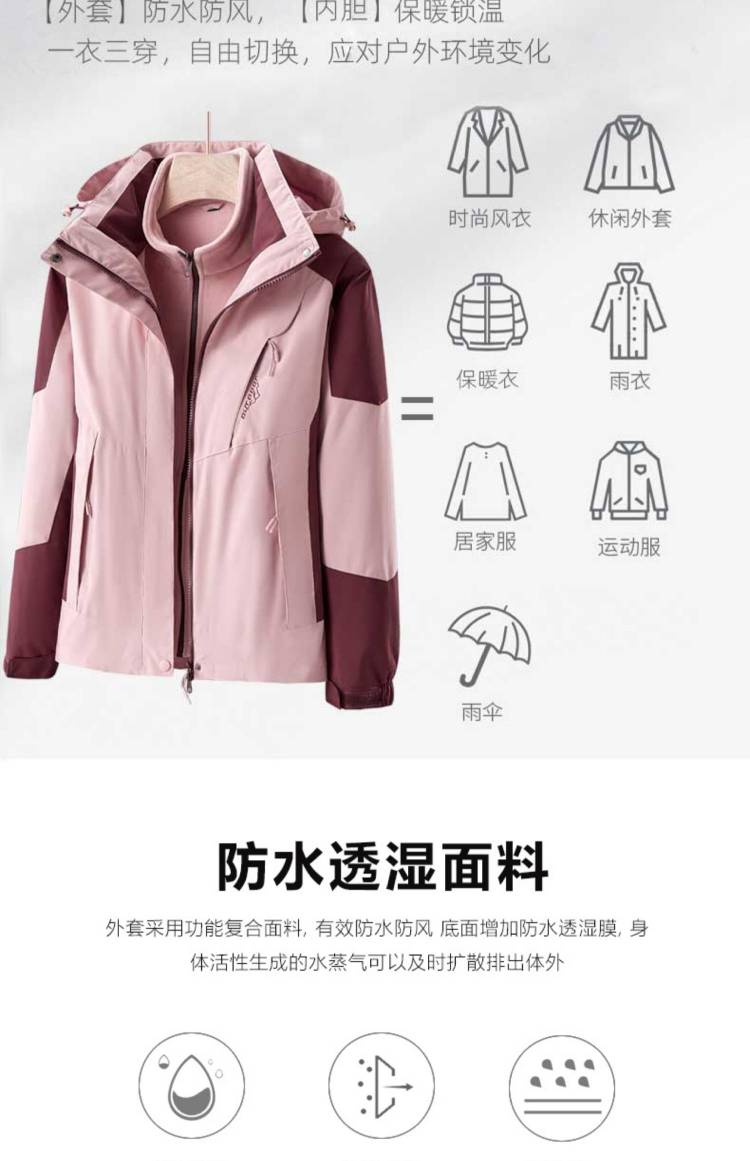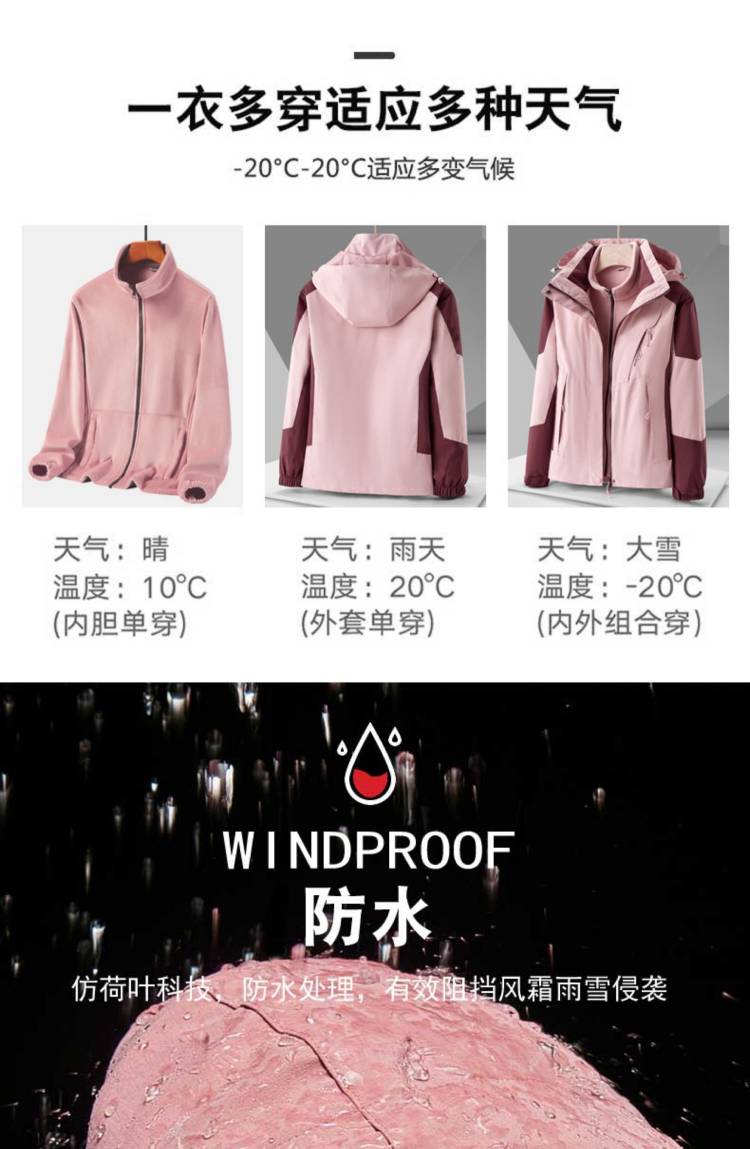 男女同款京東同款羽絨內(nèi)膽三合一沖鋒衣工作服兩件套保暖戶(hù)外徒步登山情侶秋冬款沖鋒衣工作服。