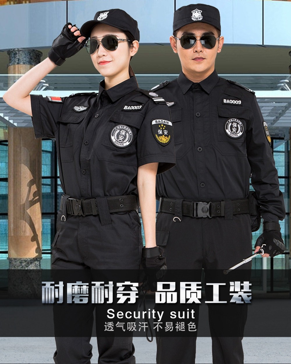 短袖保安服專(zhuān)為夏季保安設(shè)計(jì)制作的一款服裝,選用T/C滌棉面料具有較強(qiáng)的耐磨性,而且穩(wěn)定性較好,水洗或者拉扯以后不易縮水或者變形。新式保安工作服夏季短袖襯衣,物業(yè)門(mén)衛(wèi)長(zhǎng)袖套裝保安服春秋裝作訓(xùn)服,夏季黑色保安制服薄款透氣工作服。